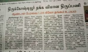 திருக்கோஷ்டியூர் தங்க விமான திருப்பணி; ஸ்ரீ ஆண்டாள் பக்தர்கள் பேரவை 1.28 கிலோ தங்கம் உபயம்