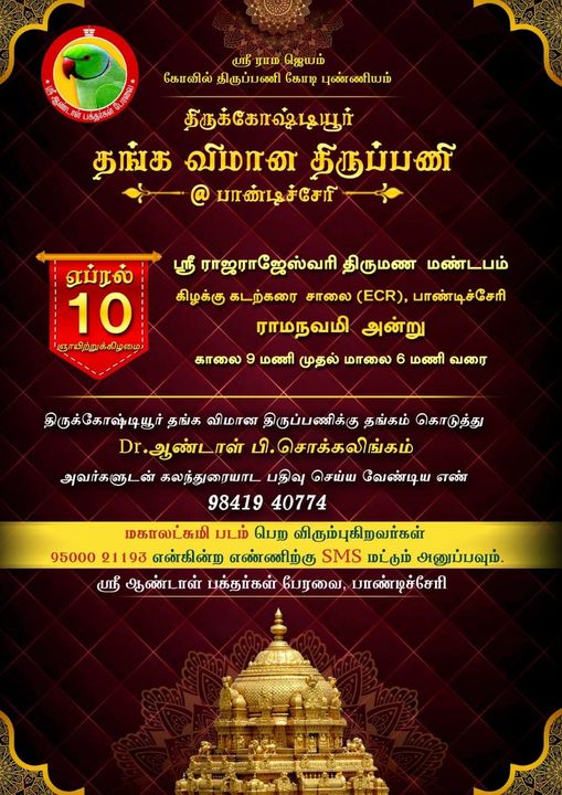 #திருகோஷ்டியூர்தங்கவிமானதிருப்பணி #SABP #SriAandalVastu_Pondicherry #SriAndalBakthargalPeravai_Pondicherry #ஸ்ரீ_ஆண்டாள்_பக்தர்கள்_பேரவை_புதுச்சேரி #செல்வசெழிப்பானவாழ்க்கைக்குஉதவும் #மகாலட்சுமிபடம் #இராமநவமி #Ramanavami #SriAandalVastu_Puducherry #SriAndalBakthargalPeravai_Puducherry #ஸ்ரீ_ஆண்டாள்_பக்தர்கள்_பேரவை #Dr_ஆண்டாள்_P_சொக்கலிங்கம் #செல்வ_செழிப்பு_மிக்க_வாழ்க்கை #Sri_Mahalakshmi_photo #Register_mobile_No_9500021193_just_sms_only #ஸ்ரீஆண்டாள்வாஸ்து_பாண்டிச்சேரி #ஸ்ரீஆண்டாள்வாஸ்து_புதுச்சேரி #ஸ்ரீ_ஆண்டாள்_பக்தர்கள்_பேரவை_பாண்டிச்சேரி #SRI_ANDAL_VASTU #SRI_ANDAL_BAKTHARGAL_PERAVAI
