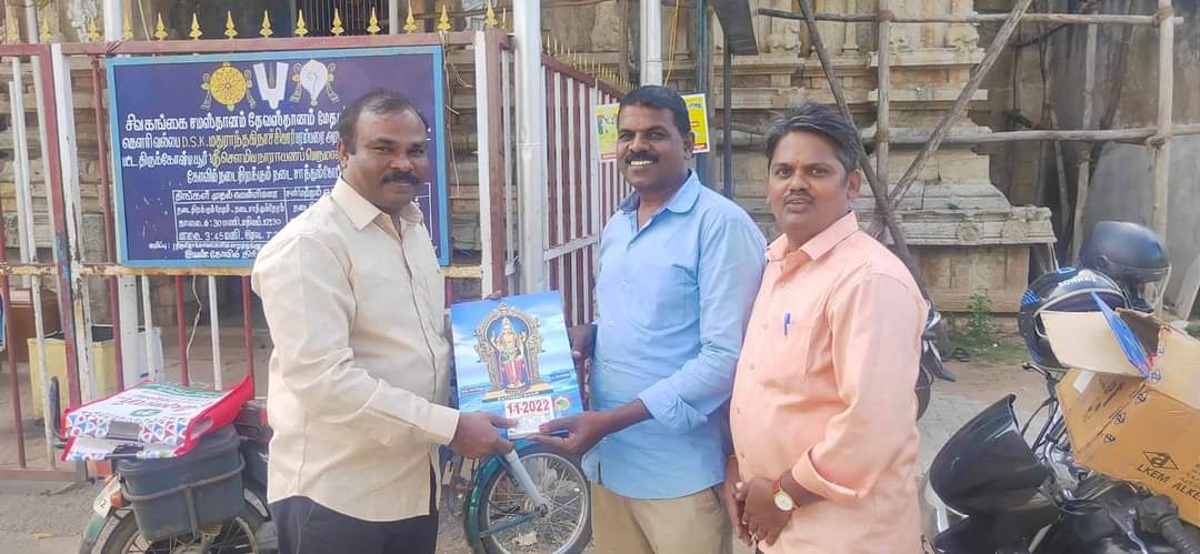 திருக்கோஷ்டியூர் பகுதியில் திருச்செந்தூர் முருகன் காலண்டருக்கு ஆக பதிவு செய்த அன்பர்களுக்கு ராமநாதபுரம் மற்றும் சிவகங்கை மாவட்ட ஸ்ரீ ஆண்டாள் பக்தர்கள் பேரவை நிர்வாகிகளான பாலன் மற்றும் முரளிதரன் இணைந்து கொடுத்தபோது பதிவு செய்யப்பட்ட மகிழ்ச்சியான தருணங்கள் நன்றி!வாழ்க வளமுடன்!