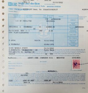இறந்த ராணுவ வீரரின் தந்தை தர்மராஜ் பெயரில் ரூ.213780/-க்கு(சேவை வரி உள்பட) LIC யின் ஜீவன் சாந்தி என்ற திட்டத்தில் பாலிசி எடுக்கப் பட்டது