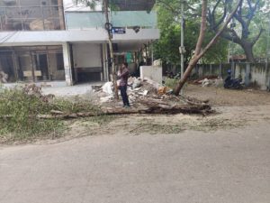 எங்கள் அலுவலகத்தில் ஒரு வாகனம் கூட நிறுத்த முடியாத அளவிற்கு குறுக்கே தள்ளி விட்டுவிட்டு பின் எங்களின் தொடர் முயற்சி காரணமாக நேற்று மரத்தை வெட்டி அப்புறப்படுத்த கார்ப்பரேஷன் அலுவலகத்திலிருந்து சிலர் வந்தார்கள்.