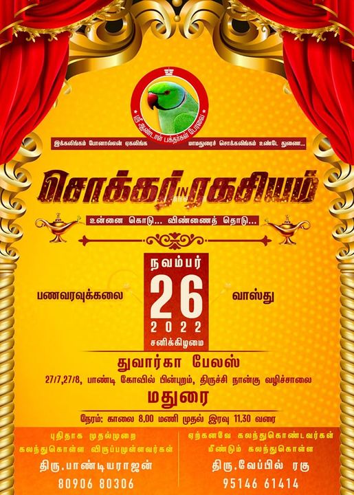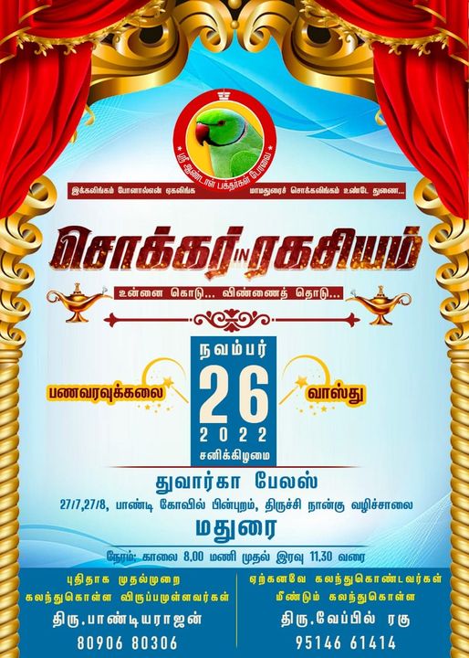 #சொக்கர்_IN_ரகசியம் #சொக்கர்_IN_ரகசியம் உன்னை கொடு விண்ணைத் தொடு – மதுரை நிகழ்ச்சி #சொக்கர்_IN_ரகசியம் #உன்னை_கொடு_விண்ணைத்_தொடு #நாள்_26_11_2022 #பணவரவுக்கலை #மனிதர்களாக_வாருங்கள் #மாமனிதர்களாக_செல்லுங்கள் #சொக்கர்_IN_ரகசியம் #உன்னைகொடு #விண்ணைதொடு #மதுரைவாஸ்துபயிற்சி #SABP #வாஸ்துபயிற்சிநாமக்கல் #வாஸ்து #Vastutraining #VastutrainingMadurai #தன்னம்பிக்கை #சொக்கர் #ரகசியம் #உன்னைகொடுவிண்ணைதொடு #Vasthutraining #நாமக்கல்_சொக்கர்_IN_ரகசியம்