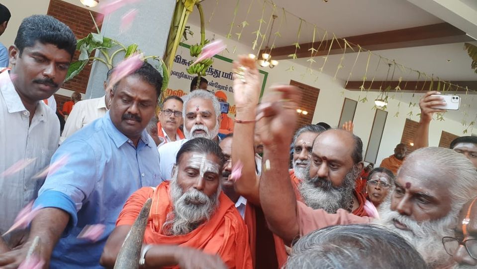 #துறவியர்கள்_மாநாடு: மதுரையில் இன்று (04.06.2022) நடைபெற்று கொண்டிருக்கும் துறவியர்கள் மாநாட்டில் கோ பூஜையுடன் கோ தானம் செய்யப்பட்டது நிகழ்வில் கோவை பேரூர் ஆதீனம் குருமகா சன்னிதானம் திருப்பெருந் திரு சாந்தலிங்க மருதாசல அடிகளார் அவர்களும்… கோவை சிரவை ஆதீனம் சீர்வளர்சீர் குமரகுருபர அடிகளார் அவர்களும்… விஷ்வ ஹிந்து பரிஷத் தென்பாரத அமைப்பாளர் பி.எம்.நாகராஜன் அவர்களும்… விஷ்வ ஹிந்து பரிஷத் வட தமிழக அமைப்பு செயலாளர் இராமன் அவர்களும்… தென் தமிழக மடங்கள் மற்றும் துறவியர்கள் அமைப்பு செயலாளர் …